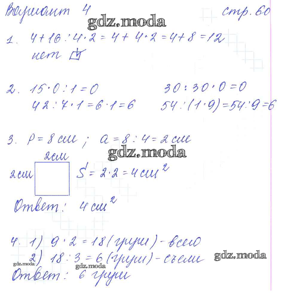 ГДЗ решение к заданию № 60 Математика 3 класс: контрольные работы Рудницкая В.Н. (к уч. Моро М.И.) Экзамен 2017 Часть 1, Часть 2 ФГОС бесплатно на гдз.мода!
