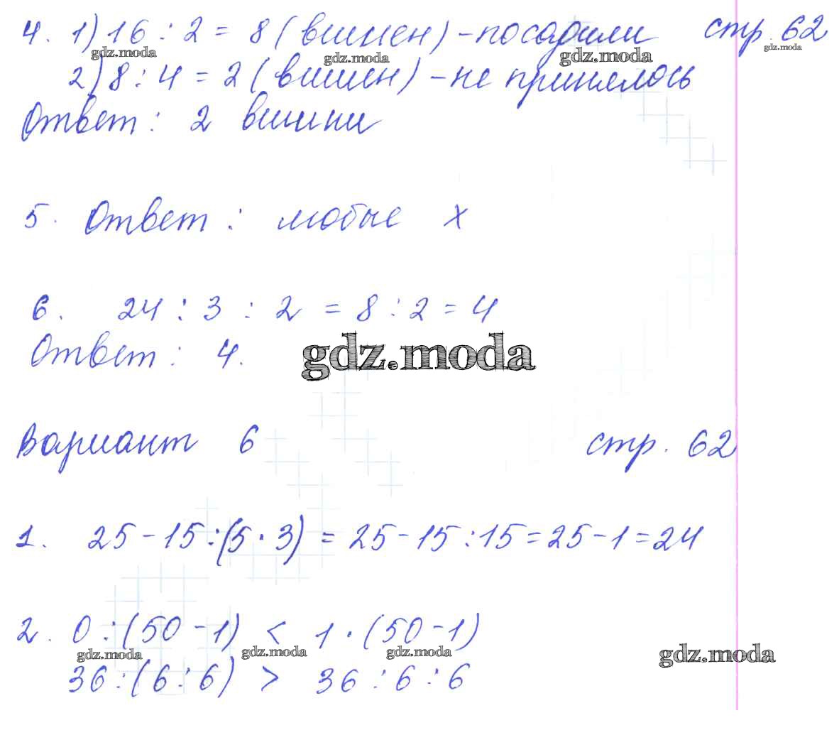 ГДЗ решение к заданию № 62 Математика 3 класс: контрольные работы Рудницкая В.Н. (к уч. Моро М.И.) Экзамен 2017 Часть 1, Часть 2 ФГОС бесплатно на гдз.мода!