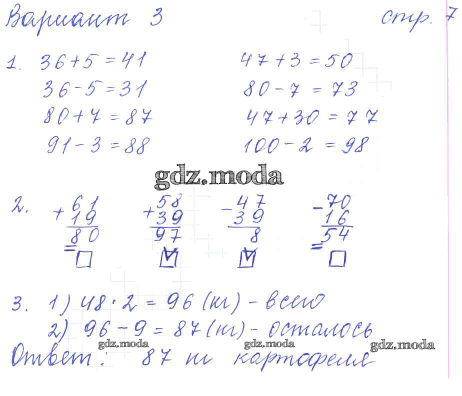 ГДЗ решение к заданию № 7 Математика 3 класс: контрольные работы Рудницкая В.Н. (к уч. Моро М.И.) Экзамен 2017 Часть 1, Часть 2 ФГОС бесплатно на гдз.мода!