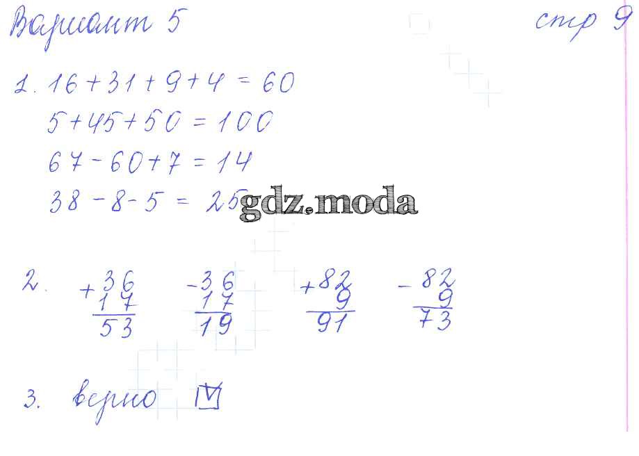 ГДЗ решение к заданию № 9 Математика 3 класс: контрольные работы Рудницкая В.Н. (к уч. Моро М.И.) Экзамен 2017 Часть 1, Часть 2 ФГОС бесплатно на гдз.мода!