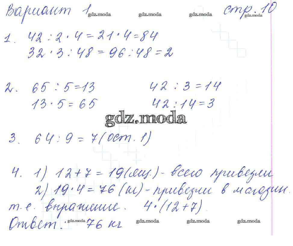 ГДЗ решение к заданию № 10 Математика 3 класс: контрольные работы Рудницкая В.Н. (к уч. Моро М.И.) Экзамен 2017 Часть 1, Часть 2 ФГОС бесплатно на гдз.мода!