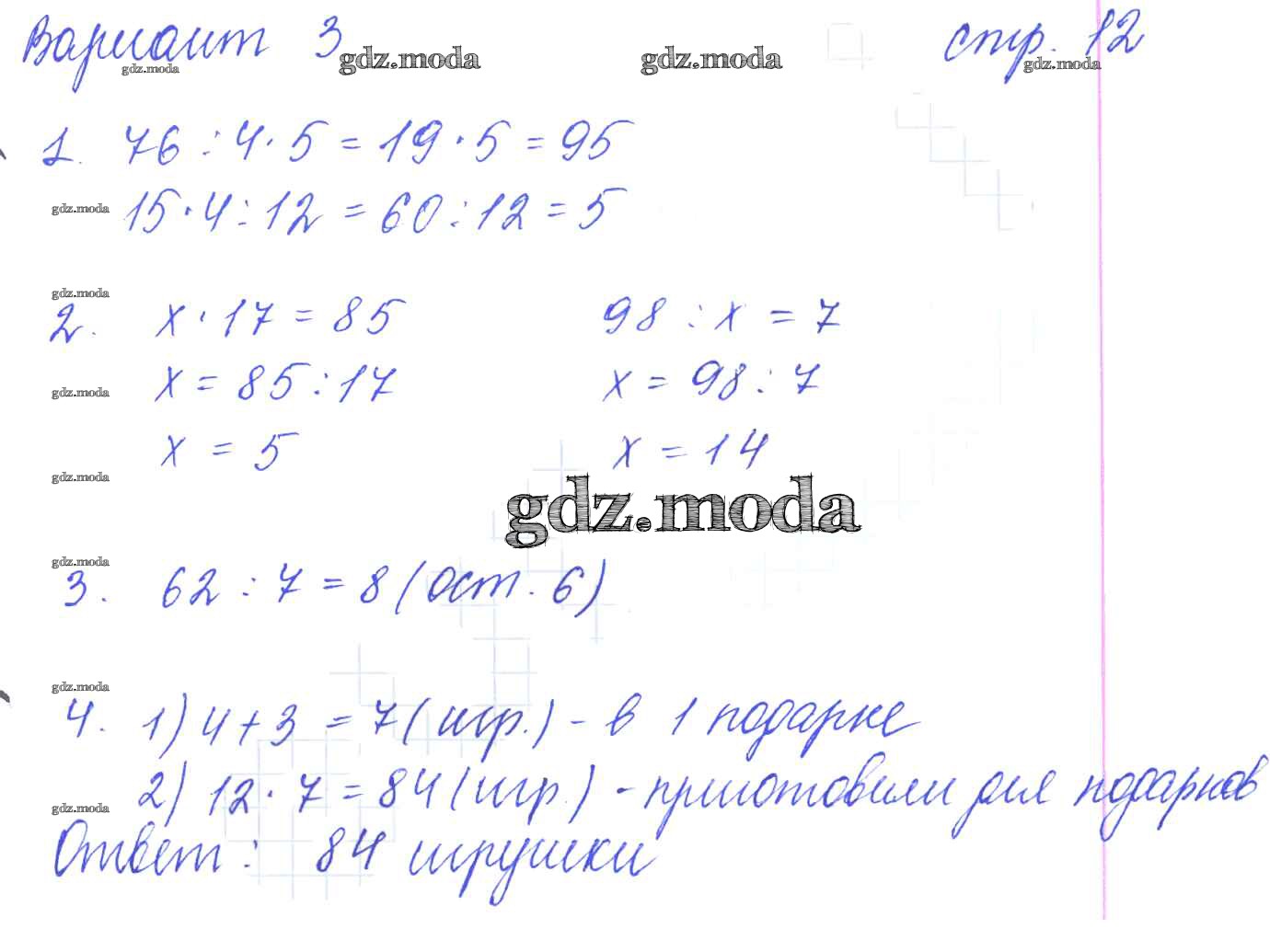 ГДЗ решение к заданию № 12 Математика 3 класс: контрольные работы Рудницкая В.Н. (к уч. Моро М.И.) Экзамен 2017 Часть 1, Часть 2 ФГОС бесплатно на гдз.мода!