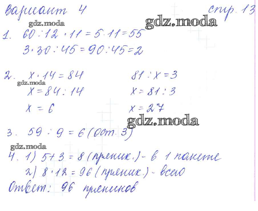 ГДЗ решение к заданию № 13 Математика 3 класс: контрольные работы Рудницкая В.Н. (к уч. Моро М.И.) Экзамен 2017 Часть 1, Часть 2 ФГОС бесплатно на гдз.мода!