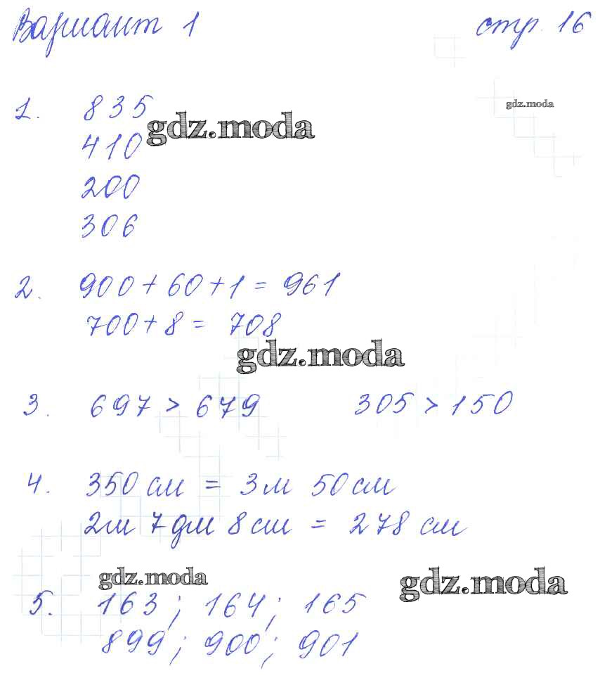 ГДЗ решение к заданию № 16 Математика 3 класс: контрольные работы Рудницкая В.Н. (к уч. Моро М.И.) Экзамен 2017 Часть 1, Часть 2 ФГОС бесплатно на гдз.мода!