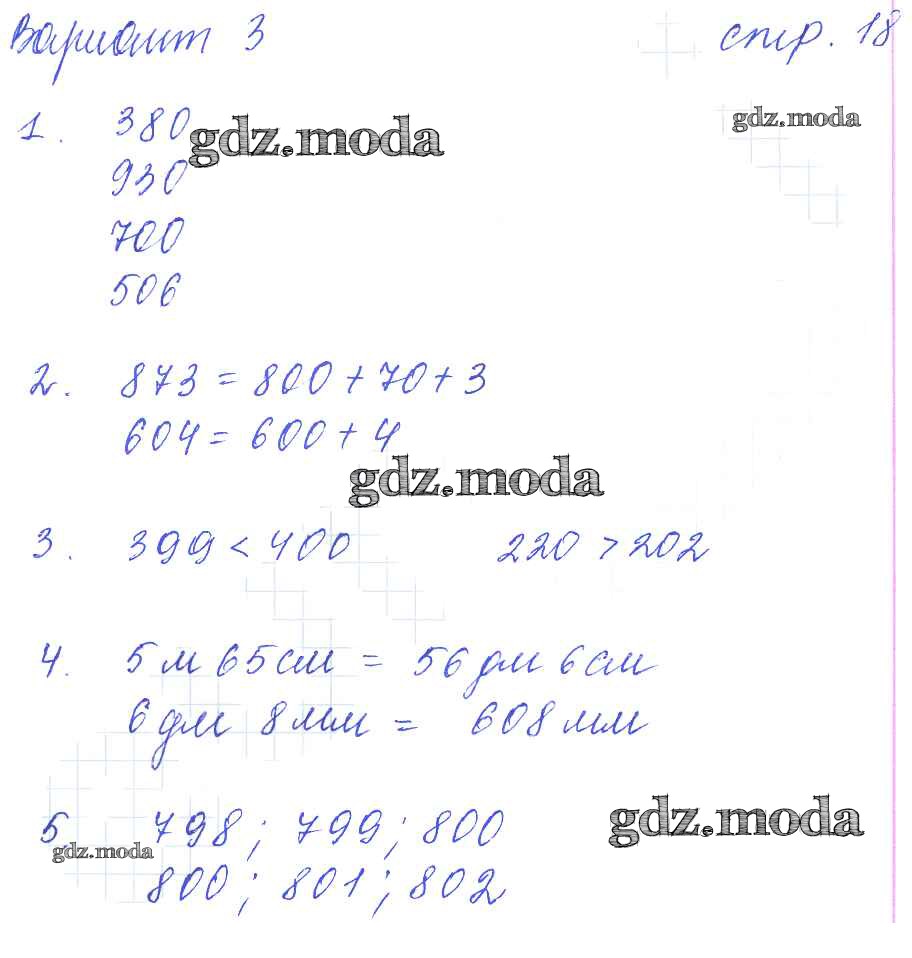 ГДЗ решение к заданию № 18 Математика 3 класс: контрольные работы Рудницкая В.Н. (к уч. Моро М.И.) Экзамен 2017 Часть 1, Часть 2 ФГОС бесплатно на гдз.мода!