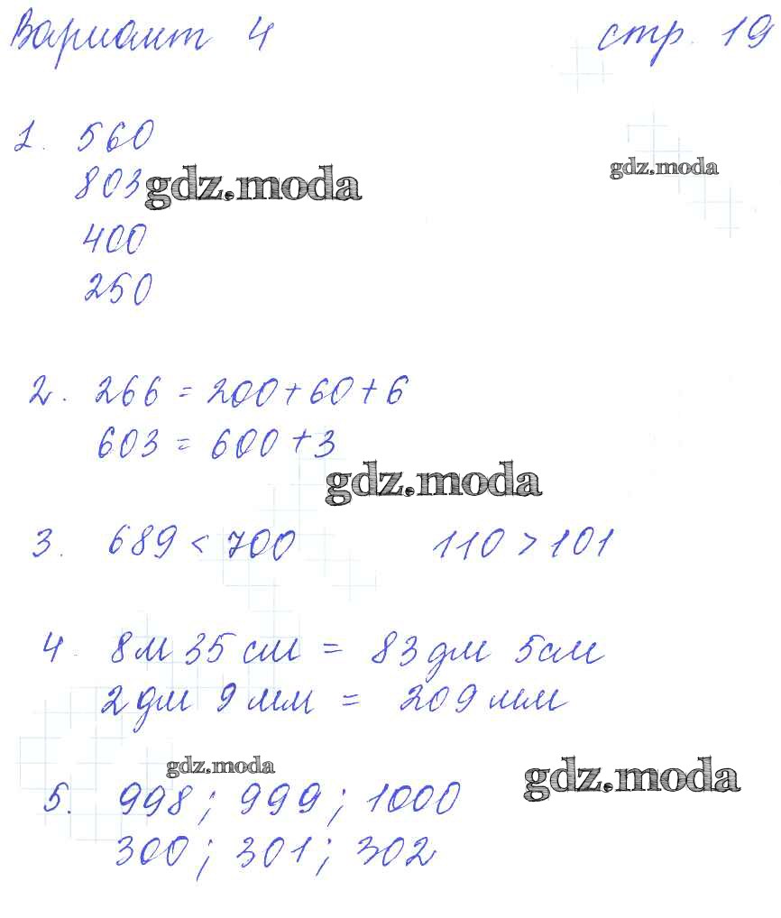 ГДЗ решение к заданию № 19 Математика 3 класс: контрольные работы Рудницкая В.Н. (к уч. Моро М.И.) Экзамен 2017 Часть 1, Часть 2 ФГОС бесплатно на гдз.мода!