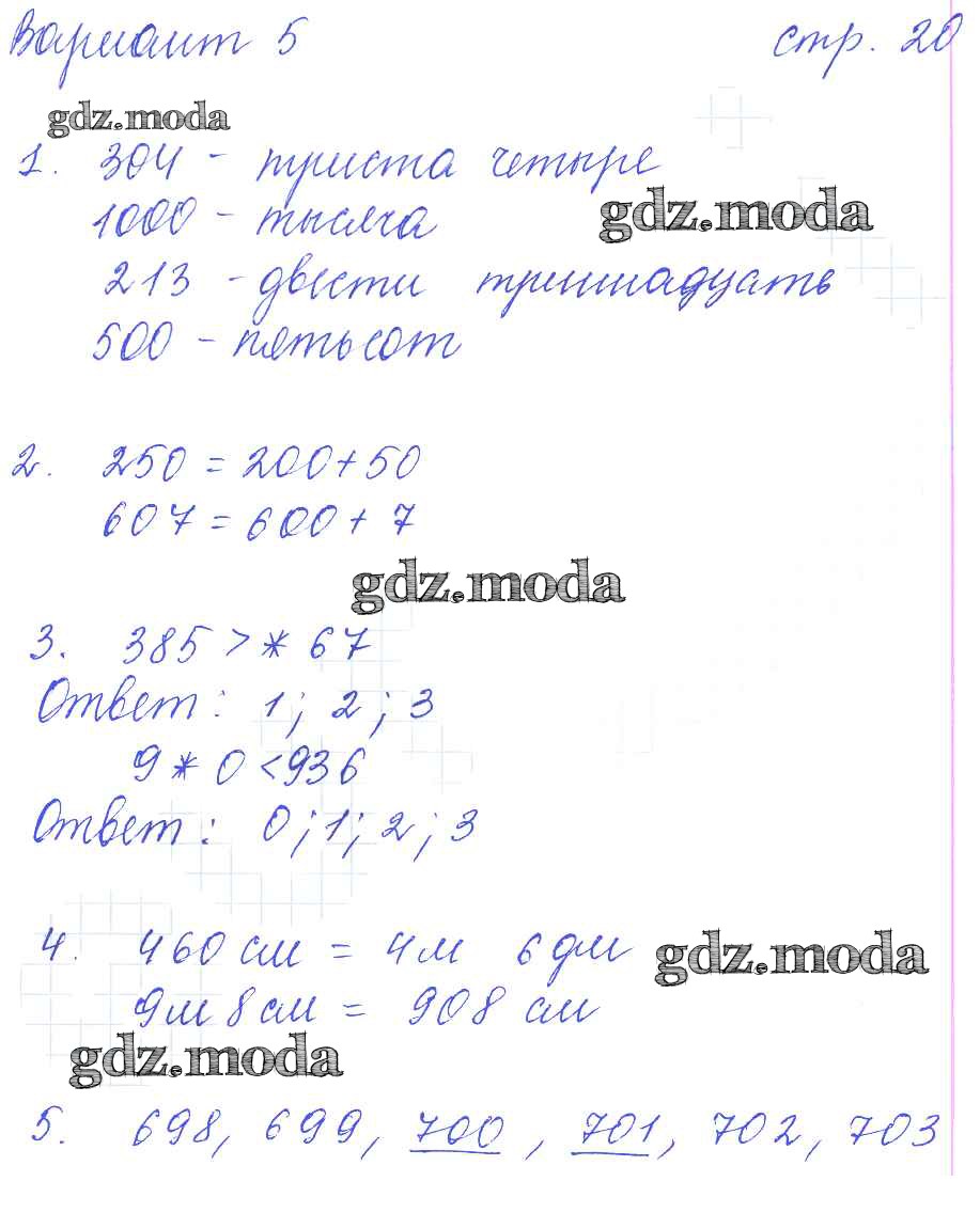 ГДЗ решение к заданию № 20 Математика 3 класс: контрольные работы Рудницкая В.Н. (к уч. Моро М.И.) Экзамен 2017 Часть 1, Часть 2 ФГОС бесплатно на гдз.мода!