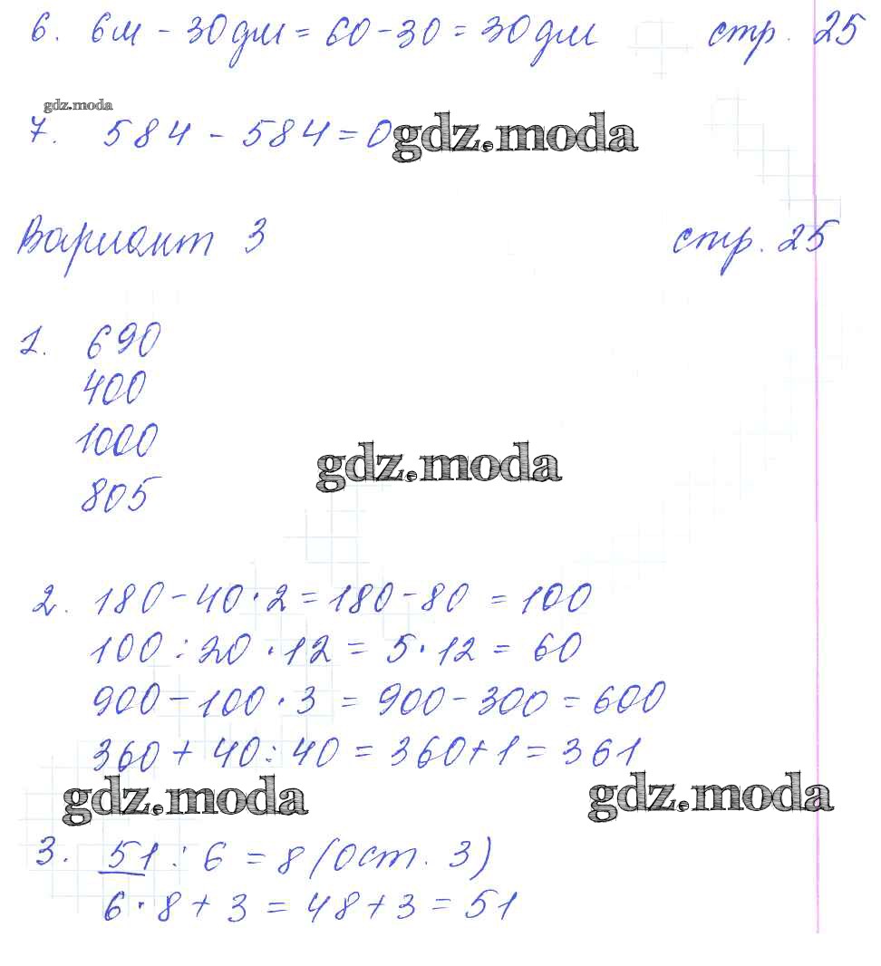 ГДЗ решение к заданию № 25 Математика 3 класс: контрольные работы Рудницкая В.Н. (к уч. Моро М.И.) Экзамен 2017 Часть 1, Часть 2 ФГОС бесплатно на гдз.мода!