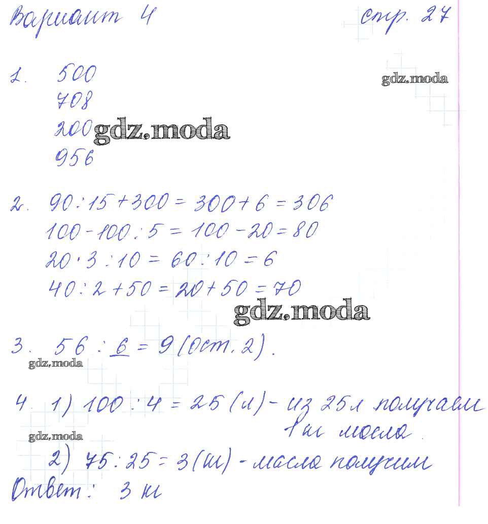 ГДЗ решение к заданию № 27 Математика 3 класс: контрольные работы Рудницкая В.Н. (к уч. Моро М.И.) Экзамен 2017 Часть 1, Часть 2 ФГОС бесплатно на гдз.мода!