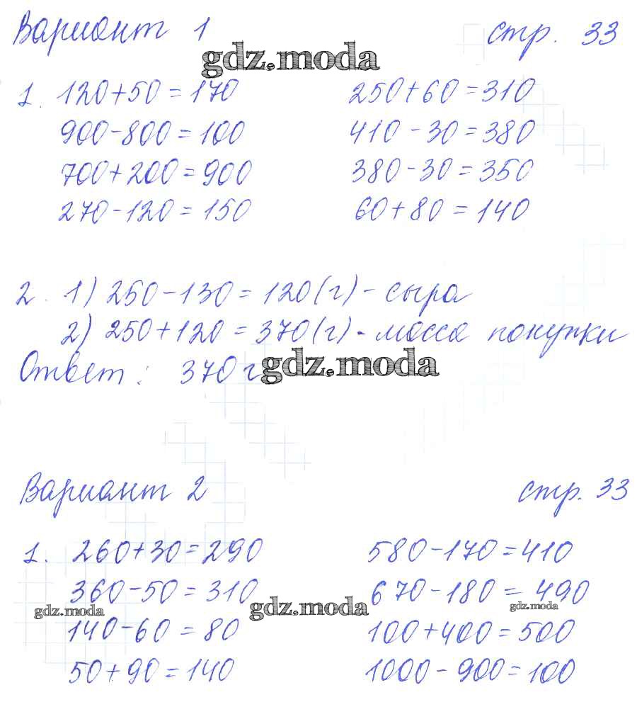 ГДЗ решение к заданию № 33 Математика 3 класс: контрольные работы Рудницкая В.Н. (к уч. Моро М.И.) Экзамен 2017 Часть 1, Часть 2 ФГОС бесплатно на гдз.мода!