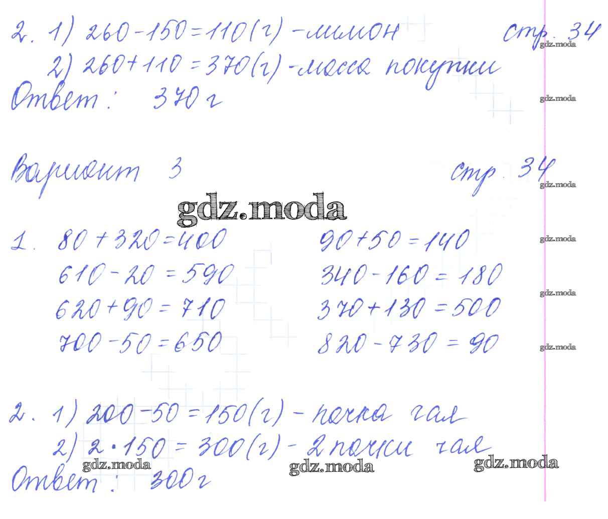 ГДЗ решение к заданию № 34 Математика 3 класс: контрольные работы Рудницкая В.Н. (к уч. Моро М.И.) Экзамен 2017 Часть 1, Часть 2 ФГОС бесплатно на гдз.мода!
