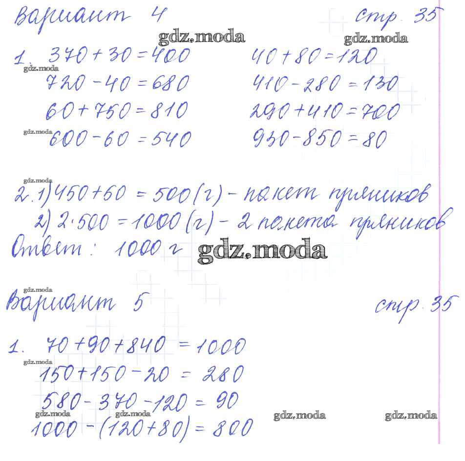 ГДЗ решение к заданию № 35 Математика 3 класс: контрольные работы Рудницкая В.Н. (к уч. Моро М.И.) Экзамен 2017 Часть 1, Часть 2 ФГОС бесплатно на гдз.мода!