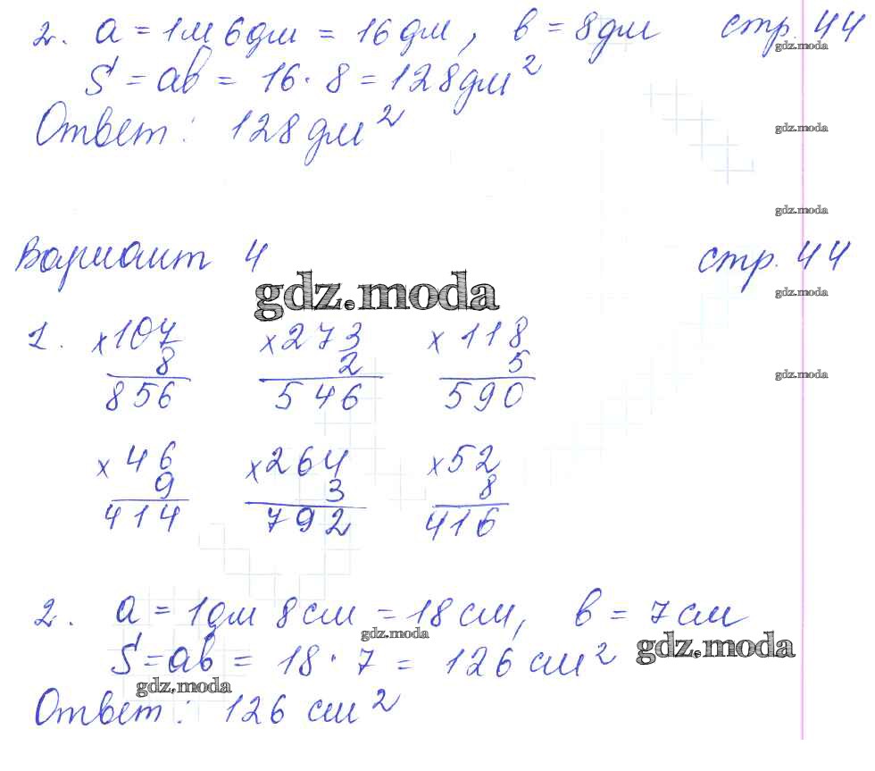 ГДЗ решение к заданию № 44 Математика 3 класс: контрольные работы Рудницкая В.Н. (к уч. Моро М.И.) Экзамен 2017 Часть 1, Часть 2 ФГОС бесплатно на гдз.мода!