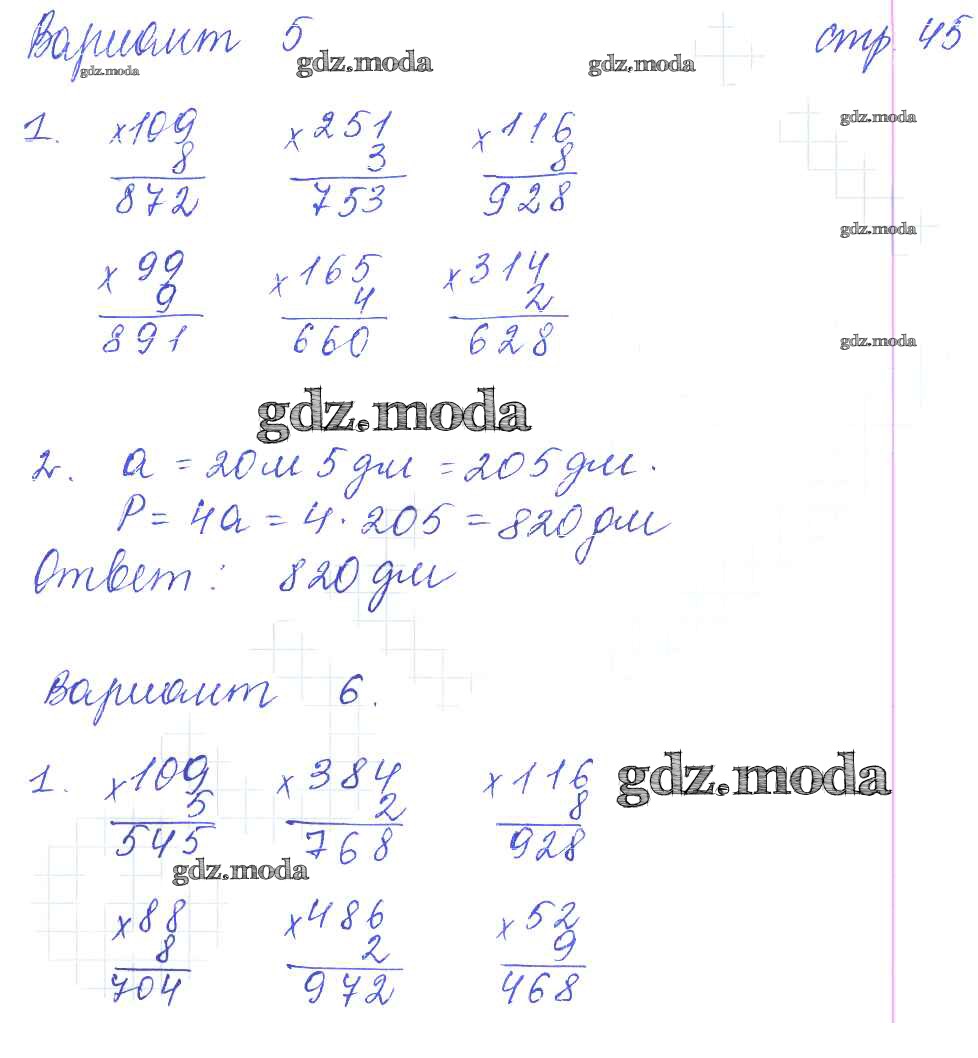 ГДЗ решение к заданию № 45 Математика 3 класс: контрольные работы Рудницкая В.Н. (к уч. Моро М.И.) Экзамен 2017 Часть 1, Часть 2 ФГОС бесплатно на гдз.мода!