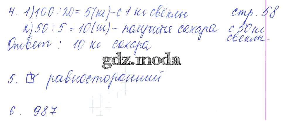 ОТВЕТ на задание № 58 Контрольные работы по Математике 3 класс Рудницкая УМК