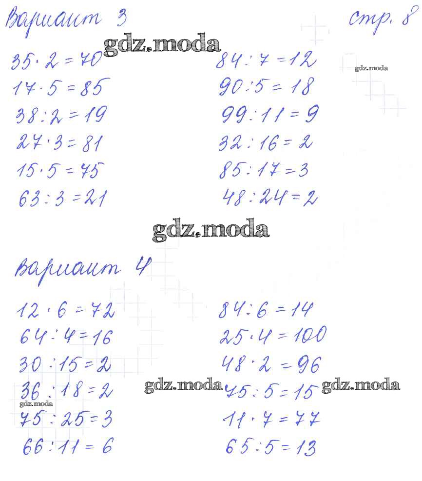 ГДЗ решение к заданию № 8 Математика 3 класс: контрольные работы Рудницкая В.Н. (к уч. Моро М.И.) Экзамен 2017 Часть 1, Часть 2 ФГОС бесплатно на гдз.мода!