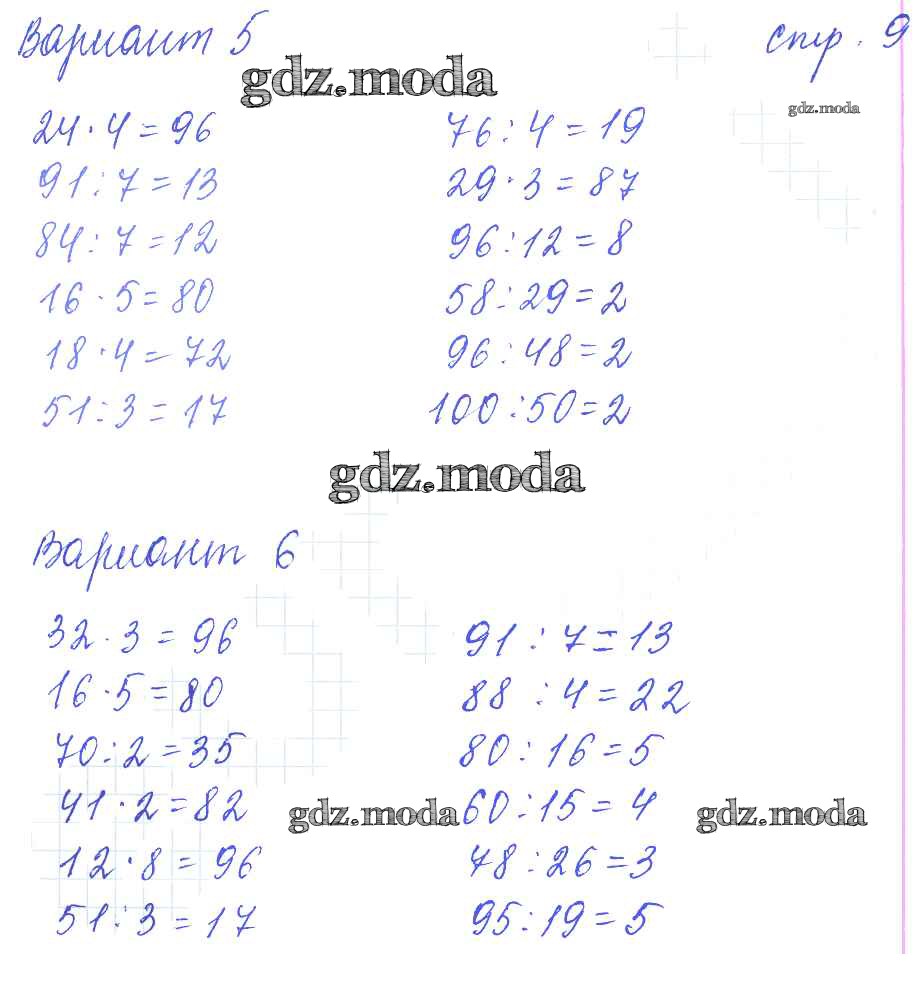 ГДЗ решение к заданию № 9 Математика 3 класс: контрольные работы Рудницкая В.Н. (к уч. Моро М.И.) Экзамен 2017 Часть 1, Часть 2 ФГОС бесплатно на гдз.мода!