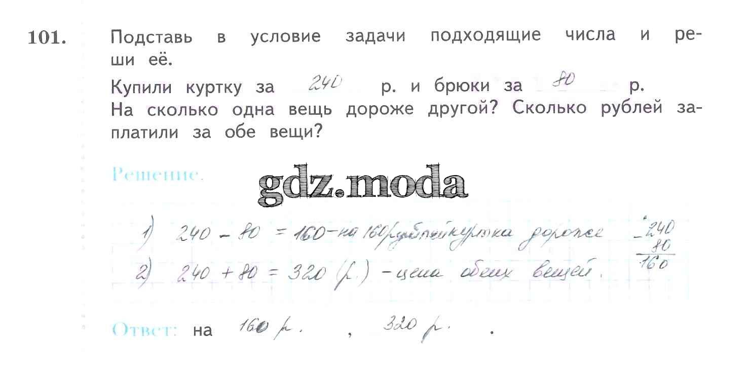 ОТВЕТ на задание № 101 Рабочая тетрадь по Математике 3 класс Рудницкая Начальная школа XXI века