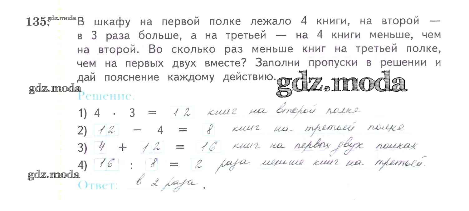 ОТВЕТ на задание № 135 Рабочая тетрадь по Математике 3 класс Рудницкая Начальная школа XXI века