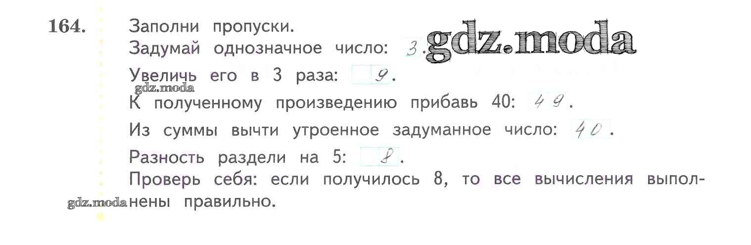 ОТВЕТ на задание № 164 Рабочая тетрадь по Математике 3 класс Рудницкая Начальная школа XXI века