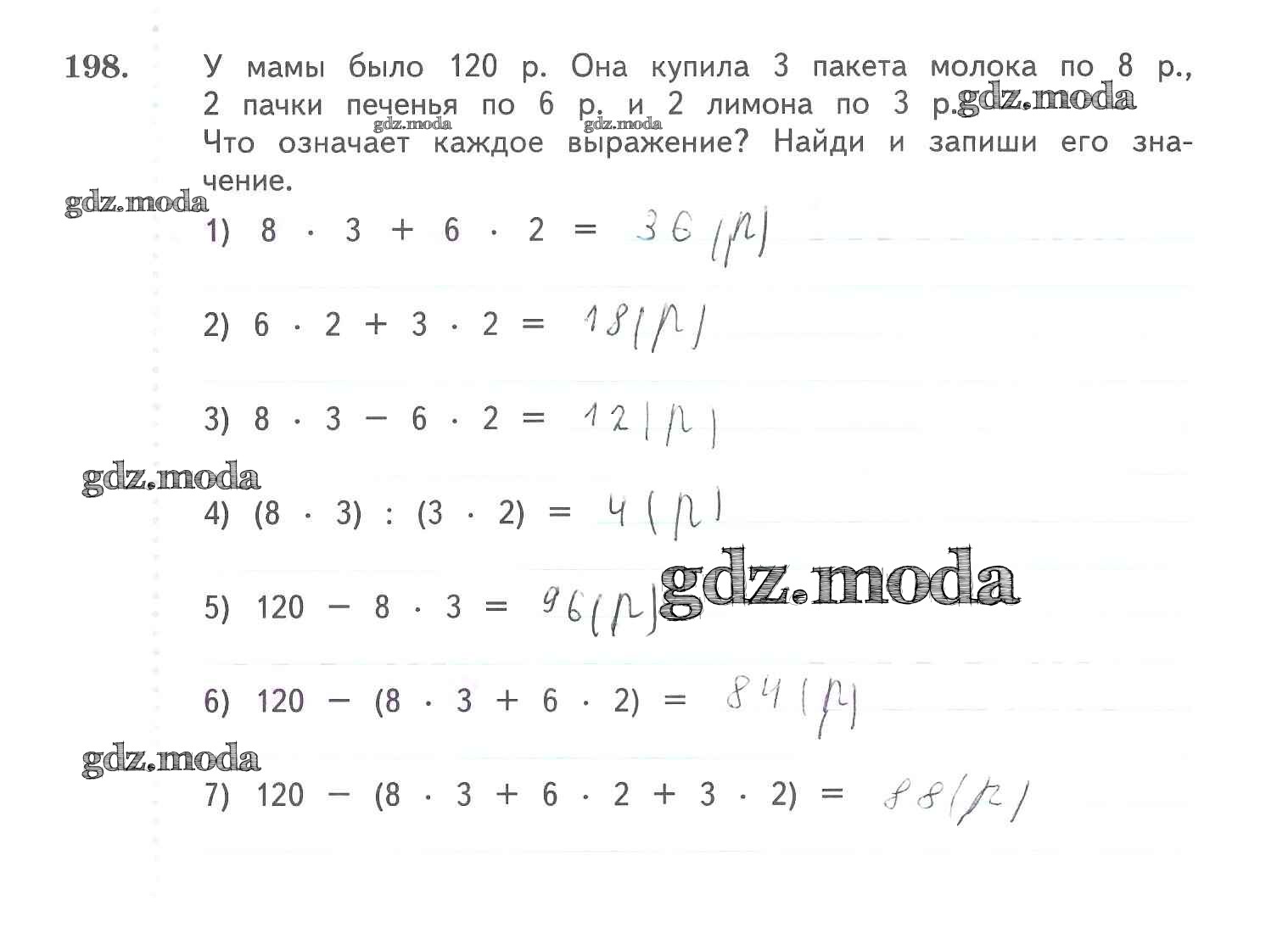 ОТВЕТ на задание № 198 Рабочая тетрадь по Математике 3 класс Рудницкая Начальная школа XXI века