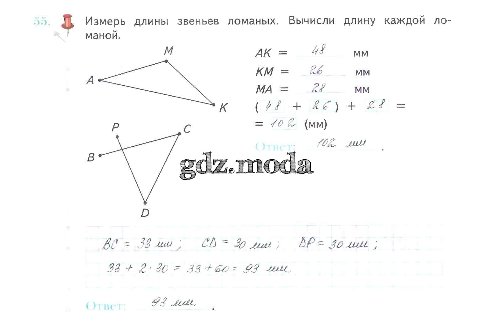 ОТВЕТ на задание № 55 Рабочая тетрадь по Математике 3 класс Рудницкая Начальная школа XXI века