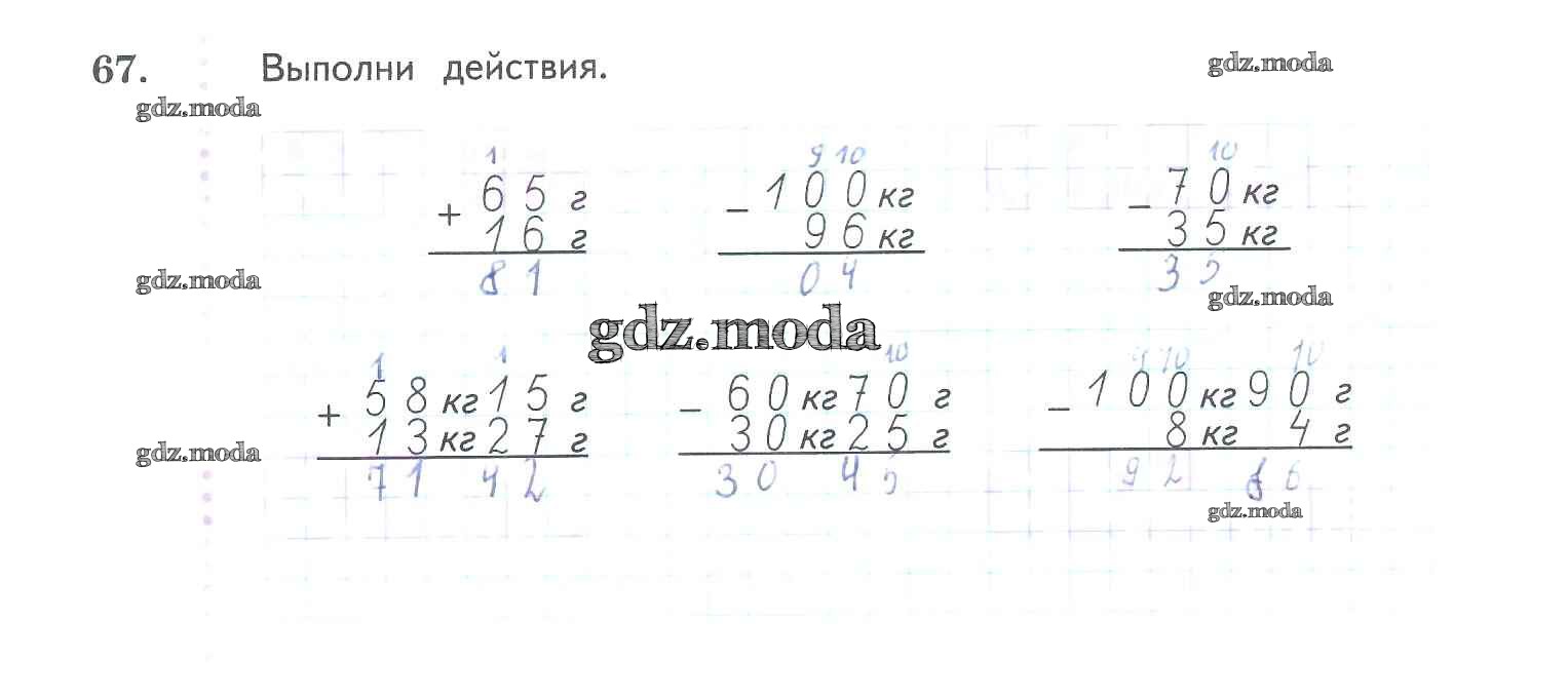 ОТВЕТ на задание № 67 Рабочая тетрадь по Математике 3 класс Рудницкая Начальная школа XXI века