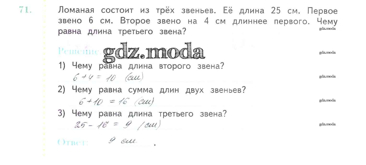 ОТВЕТ на задание № 71 Рабочая тетрадь по Математике 3 класс Рудницкая Начальная школа XXI века