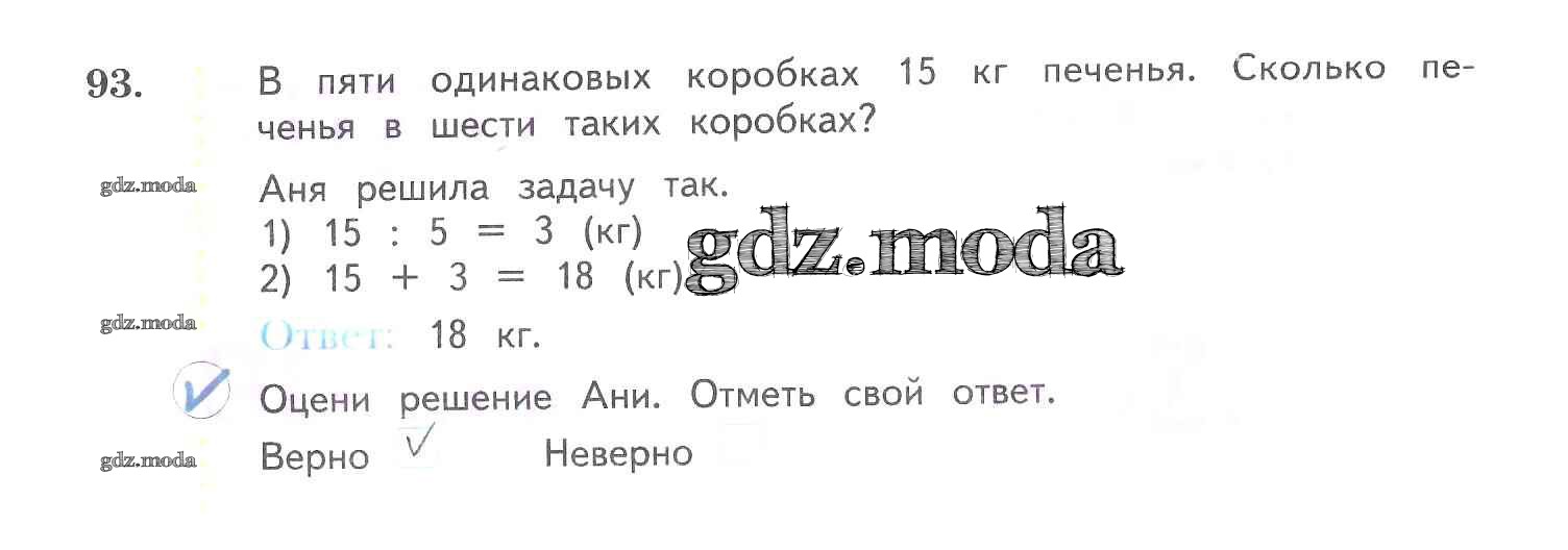 ОТВЕТ на задание № 93 Рабочая тетрадь по Математике 3 класс Рудницкая Начальная школа XXI века