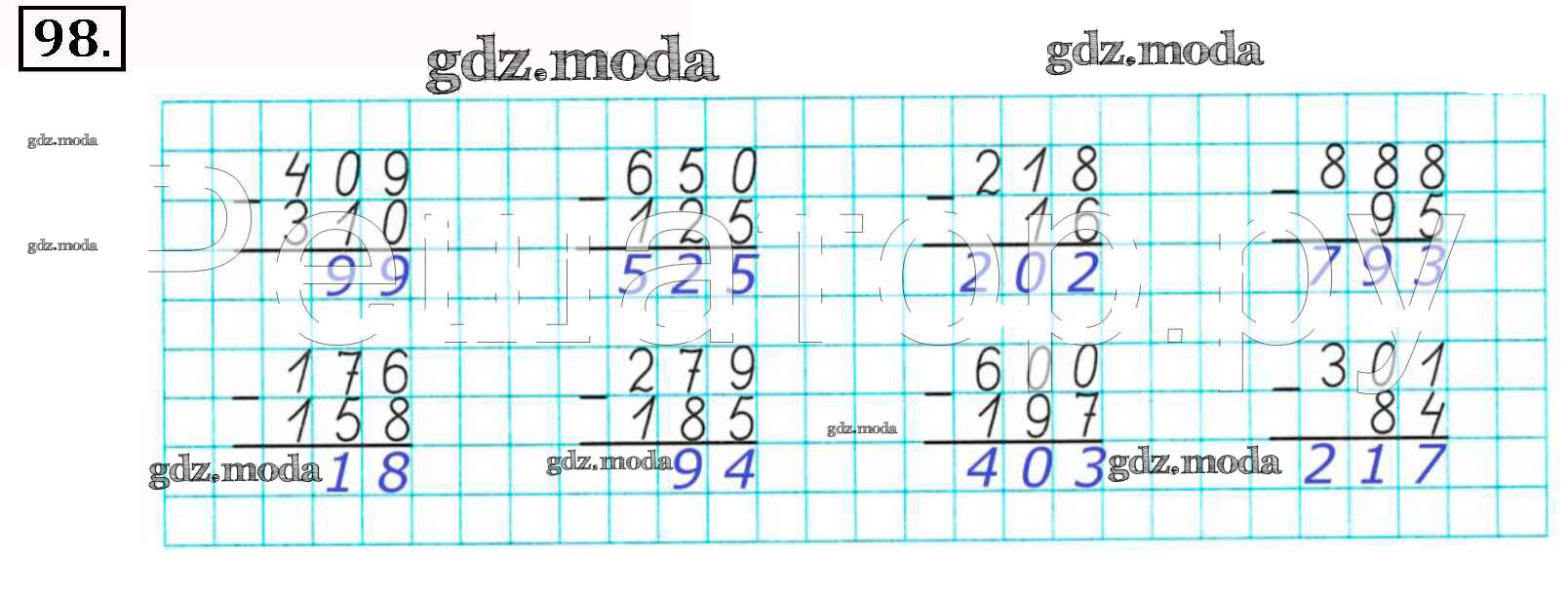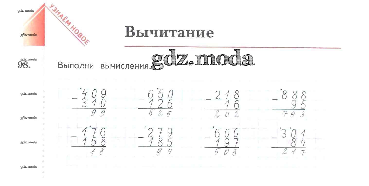ОТВЕТ на задание № 98 Рабочая тетрадь по Математике 3 класс Рудницкая Начальная школа XXI века