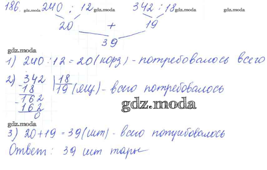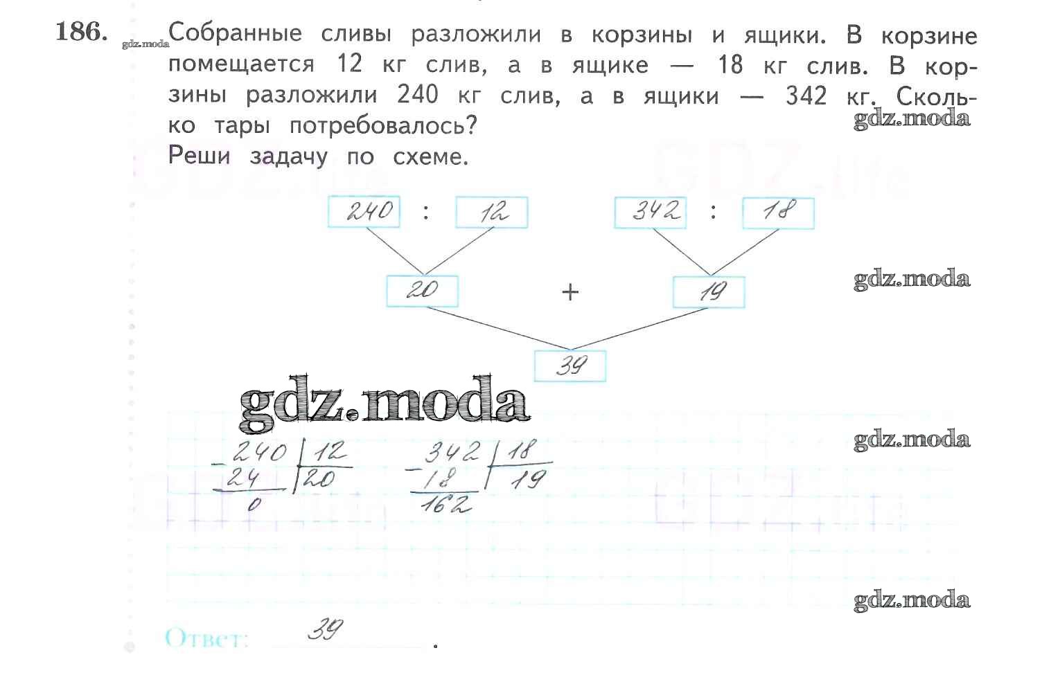 ОТВЕТ на задание № 186 Рабочая тетрадь по Математике 3 класс Рудницкая Начальная школа XXI века