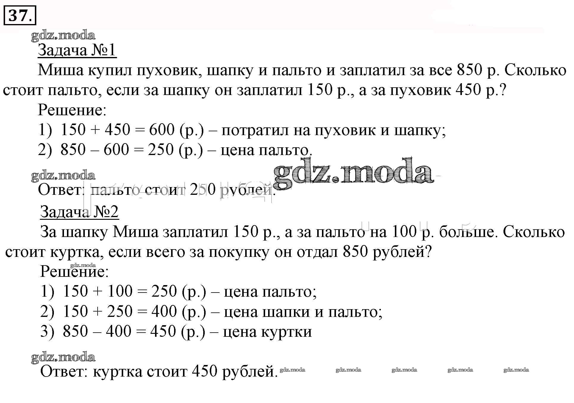 ОТВЕТ на задание № 37 Рабочая тетрадь по Математике 3 класс Рудницкая Начальная школа XXI века