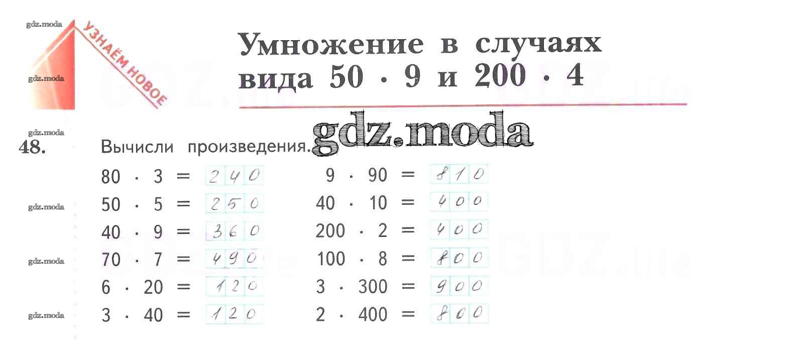 ОТВЕТ на задание № 48 Рабочая тетрадь по Математике 3 класс Рудницкая Начальная школа XXI века