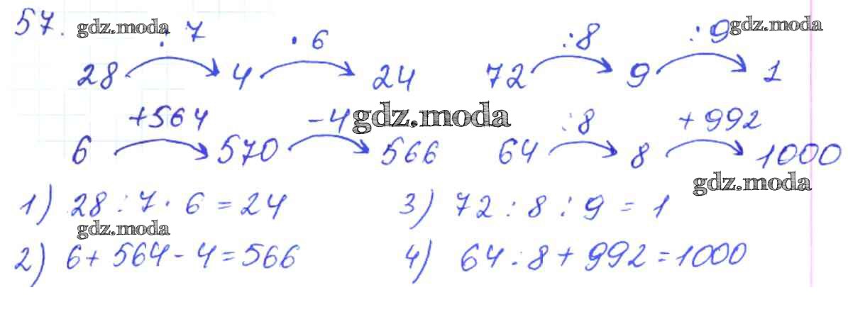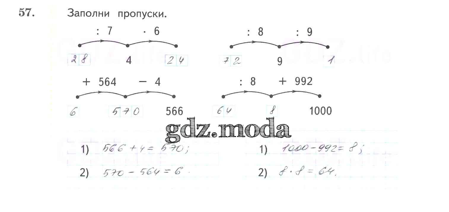 ОТВЕТ на задание № 57 Рабочая тетрадь по Математике 3 класс Рудницкая Начальная школа XXI века