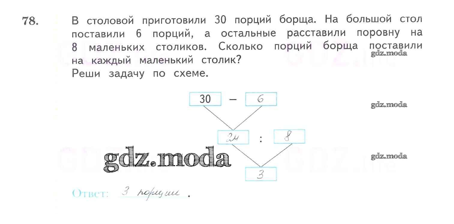 ОТВЕТ на задание № 78 Рабочая тетрадь по Математике 3 класс Рудницкая Начальная школа XXI века