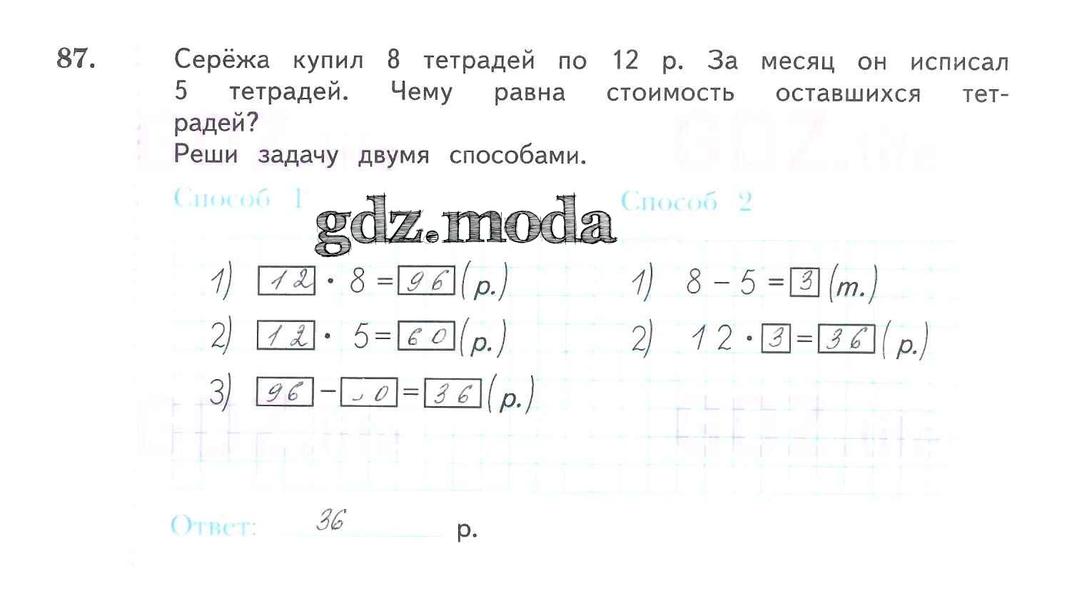 ОТВЕТ на задание № 87 Рабочая тетрадь по Математике 3 класс Рудницкая Начальная школа XXI века