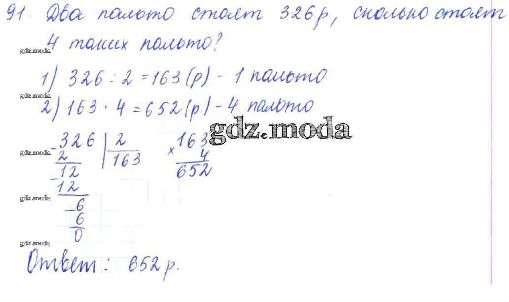 ОТВЕТ на задание № 91 Рабочая тетрадь по Математике 3 класс Рудницкая Начальная школа XXI века