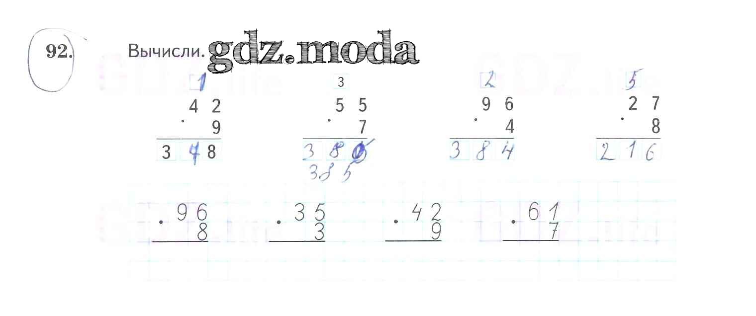 ОТВЕТ на задание № 92 Рабочая тетрадь по Математике 3 класс Рудницкая Начальная школа XXI века