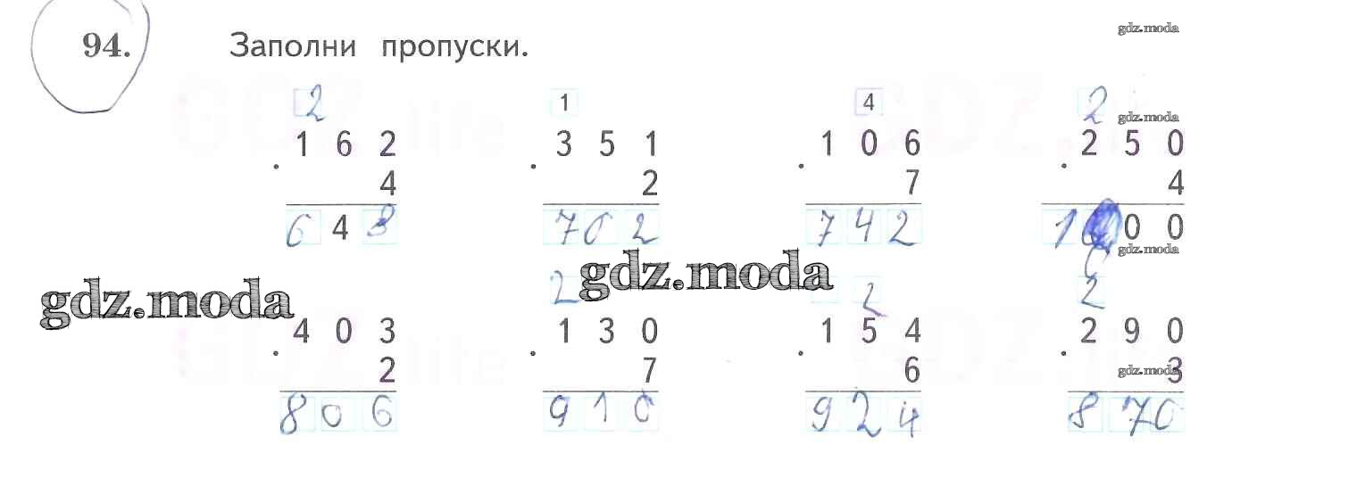 ОТВЕТ на задание № 94 Рабочая тетрадь по Математике 3 класс Рудницкая Начальная школа XXI века