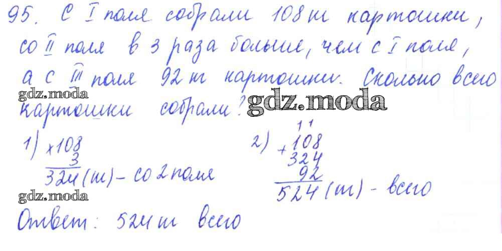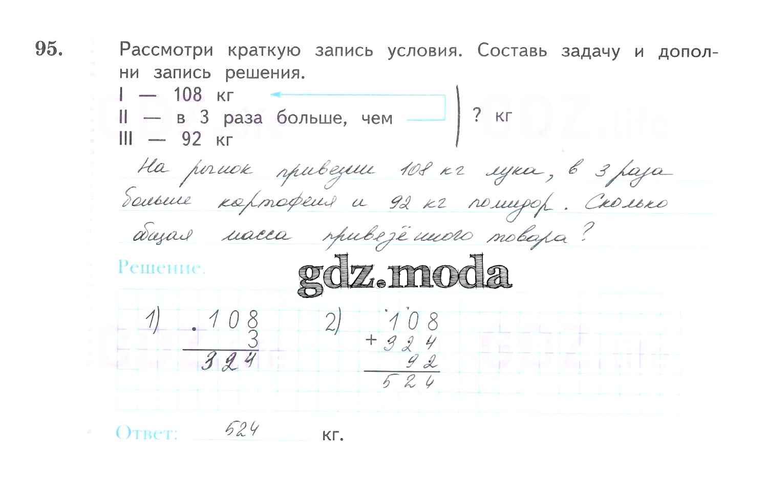 ОТВЕТ на задание № 95 Рабочая тетрадь по Математике 3 класс Рудницкая Начальная школа XXI века