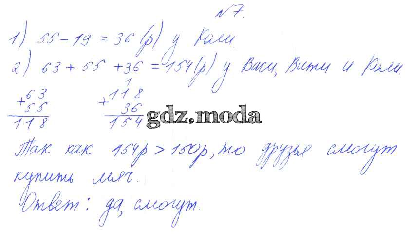 ОТВЕТ на задание № 7 Учебник по Математике 3 класс Рудницкая Начальная школа XXI века