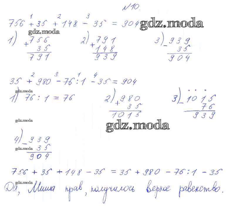ОТВЕТ на задание № 10 Учебник по Математике 3 класс Рудницкая Начальная школа XXI века