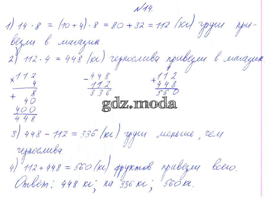ОТВЕТ на задание № 14 Учебник по Математике 3 класс Рудницкая Начальная школа XXI века