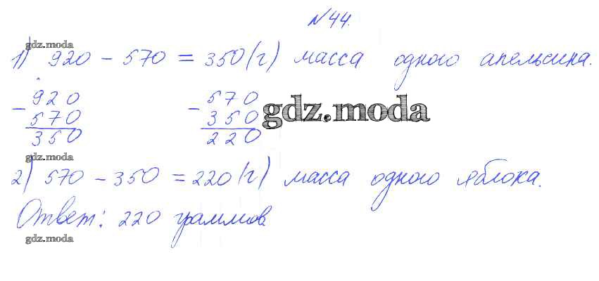 ОТВЕТ на задание № 44 Учебник по Математике 3 класс Рудницкая Начальная школа XXI века