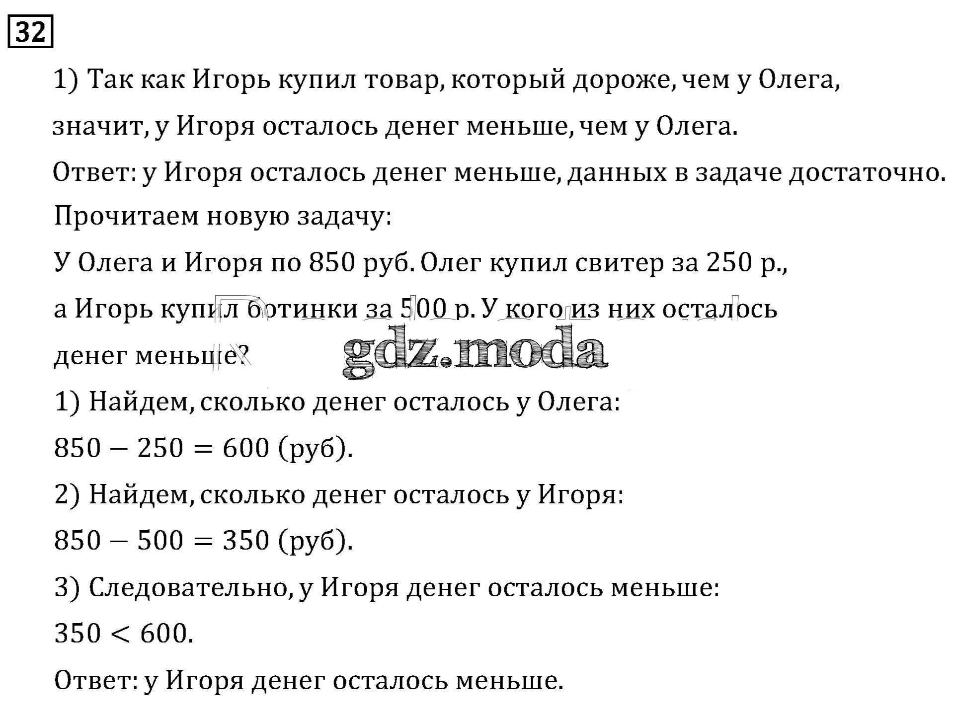 ОТВЕТ на задание № 32 Учебник по Математике 3 класс Рудницкая Начальная школа XXI века