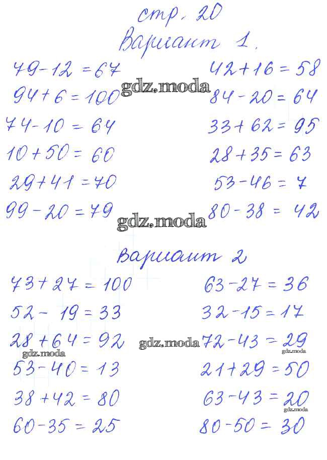 ГДЗ решение к заданию № 20 Математика 3 класс самостоятельные работы Самсонова Л.Ю. Экзамен 2016 Часть 1, Часть 2 ФГОС бесплатно на гдз.мода!