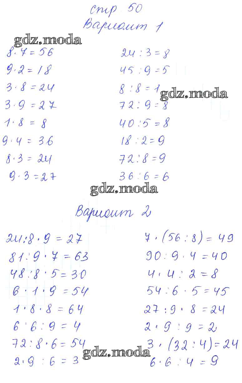 ГДЗ решение к заданию № 50 Математика 3 класс самостоятельные работы Самсонова Л.Ю. Экзамен 2016 Часть 1, Часть 2 ФГОС бесплатно на гдз.мода!
