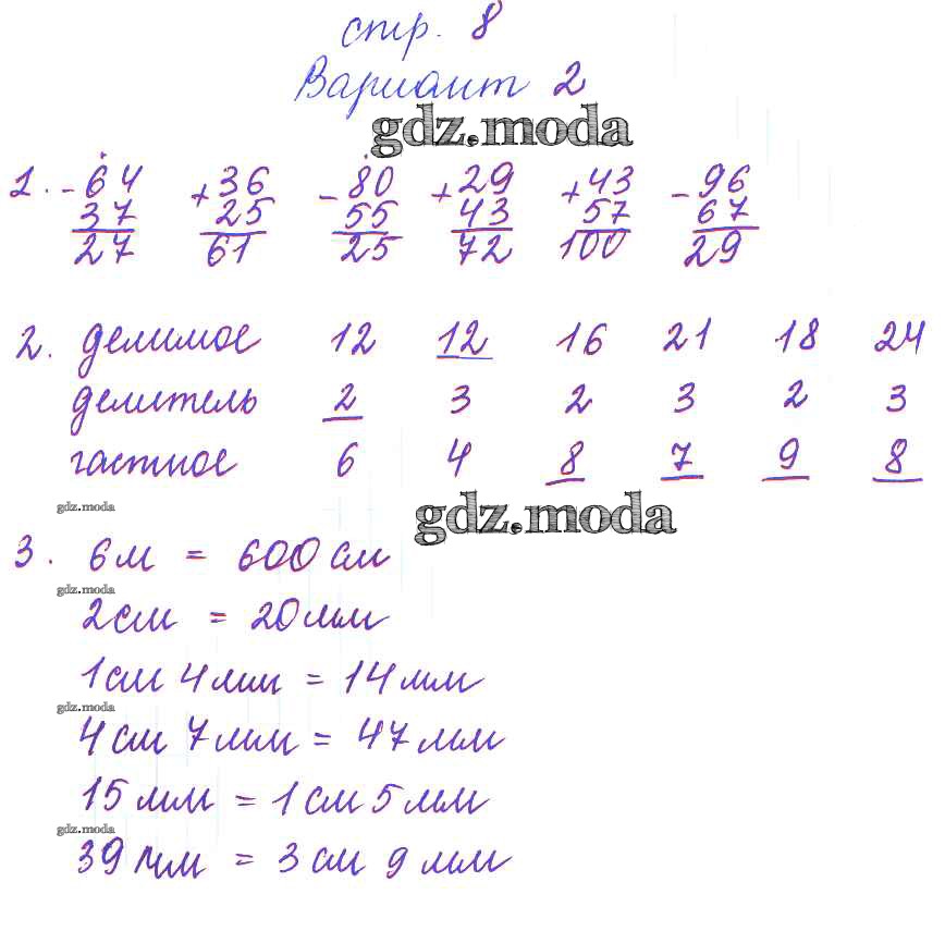 ГДЗ решение к заданию № 8 Математика 3 класс самостоятельные работы Самсонова Л.Ю. Экзамен 2016 Часть 1, Часть 2 ФГОС бесплатно на гдз.мода!
