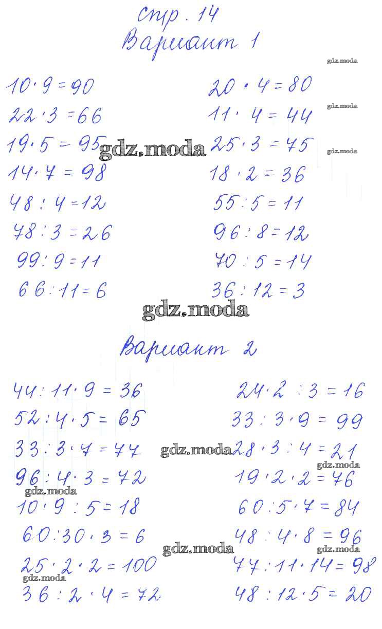 ГДЗ решение к заданию № 14 Математика 3 класс самостоятельные работы Самсонова Л.Ю. Экзамен 2016 Часть 1, Часть 2 ФГОС бесплатно на гдз.мода!