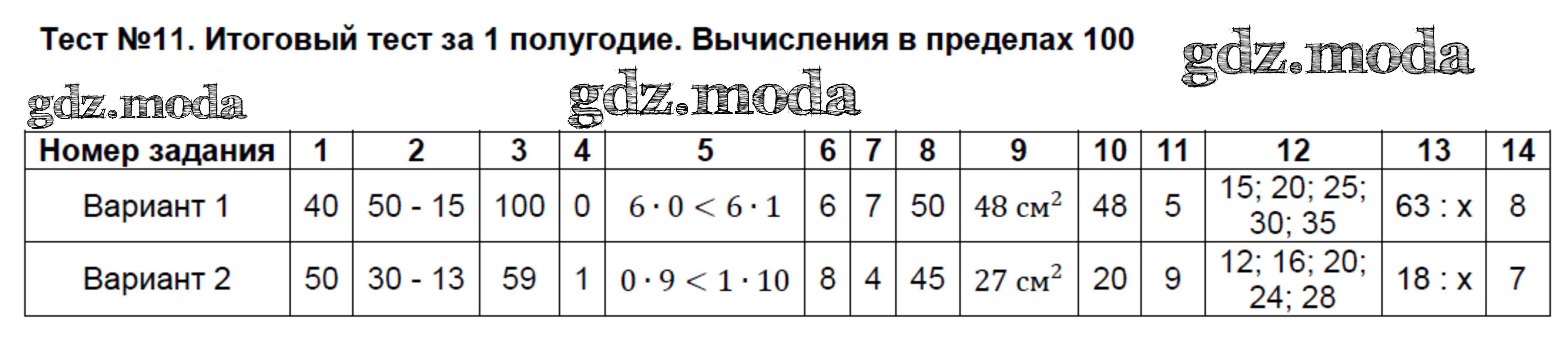 ГДЗ решение к заданию № 11 Математика 3 класс тесты Рудницкая В.Н. (к уч. Моро М.И.) Экзамен 2020 Часть 1, Часть 2 ФГОС бесплатно на гдз.мода!